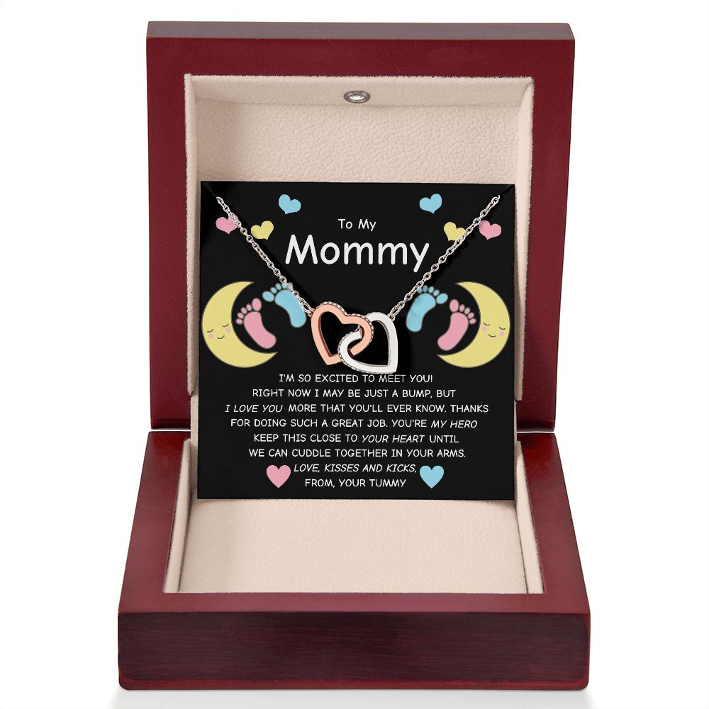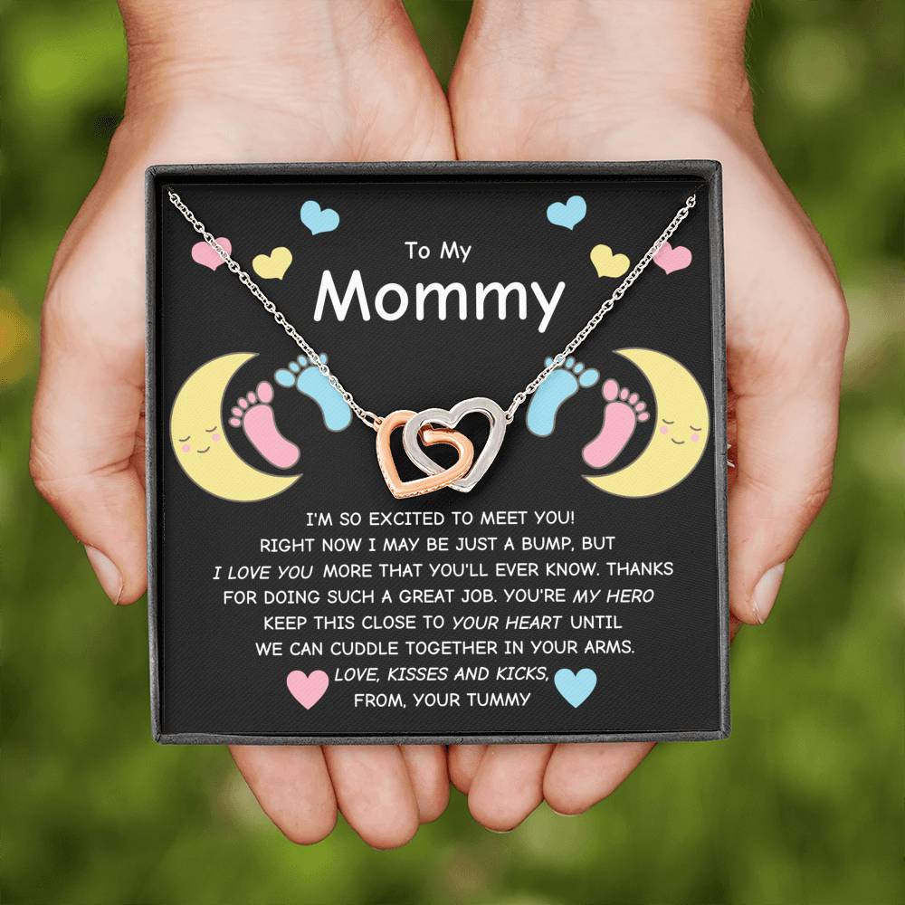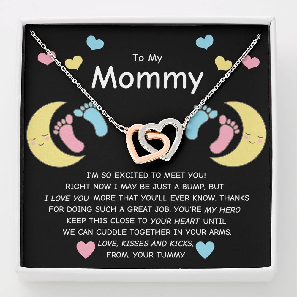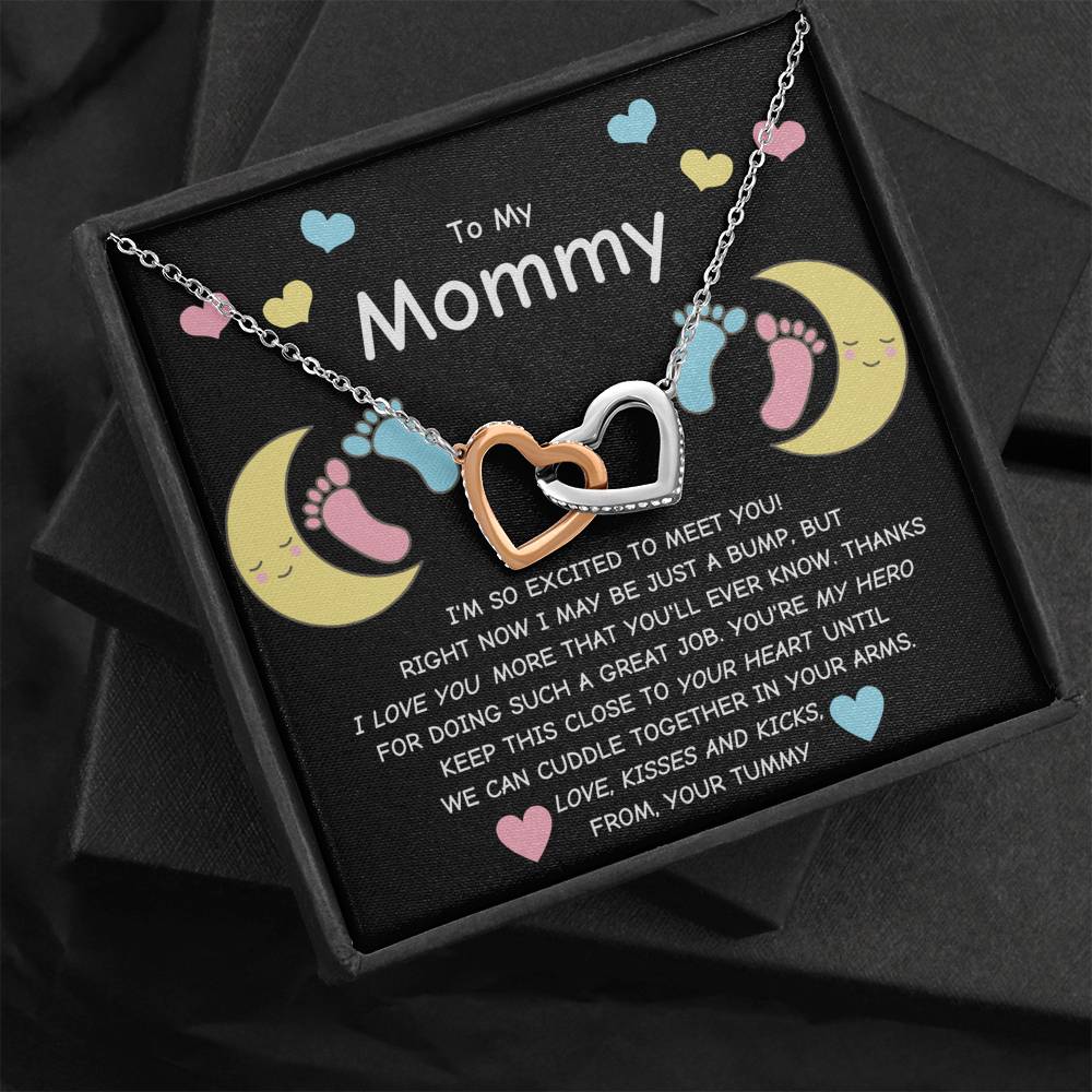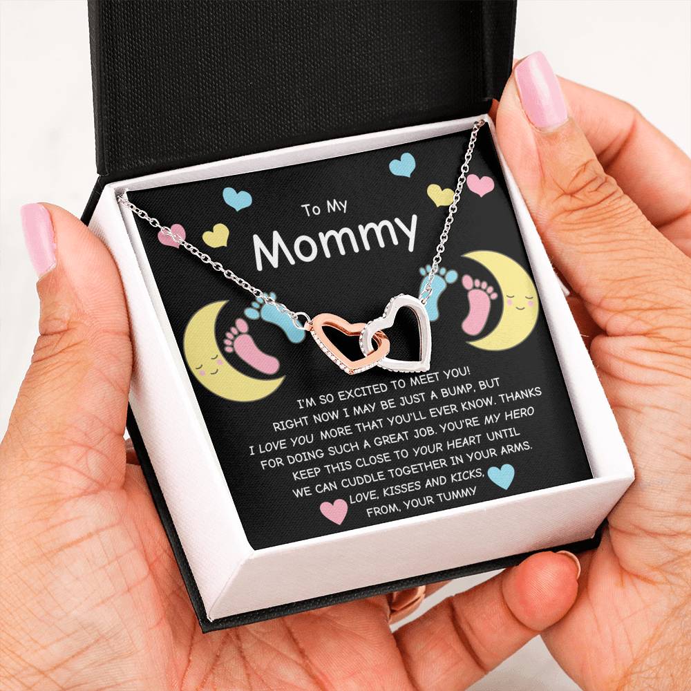 Surprise the Expecting "Mom to Be" with this Forever Interlocking Hearts necklace with message card (as shown) gift today!