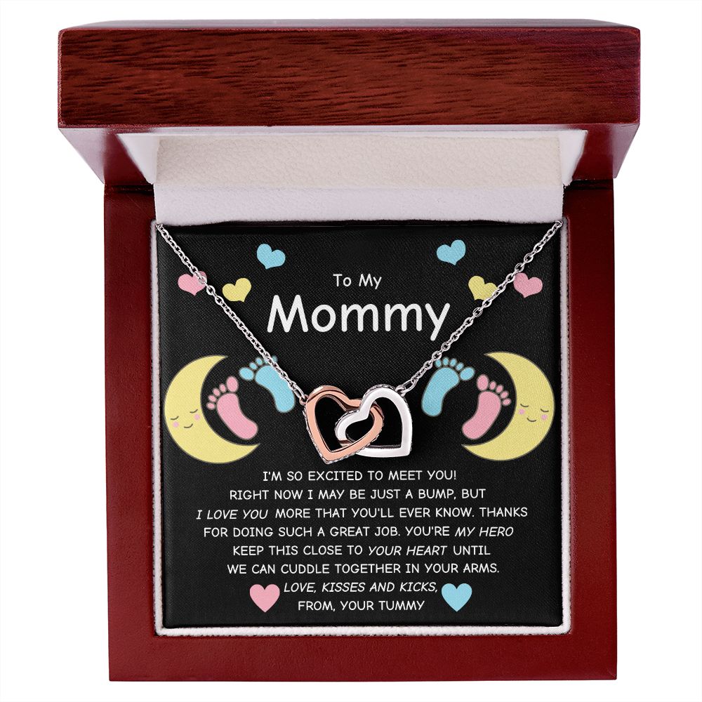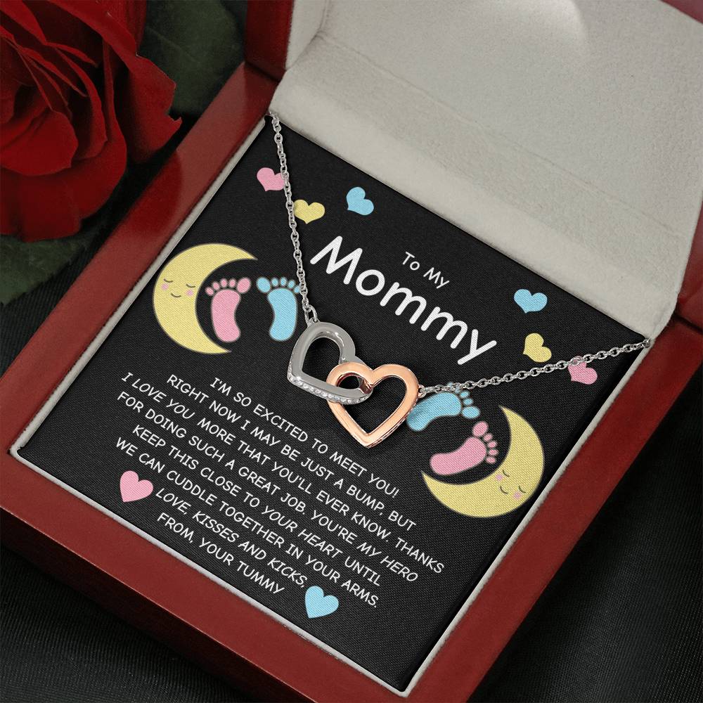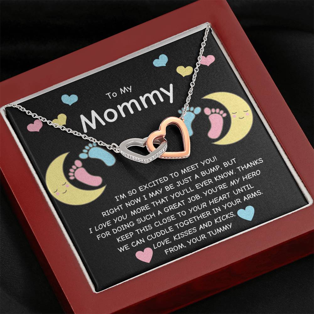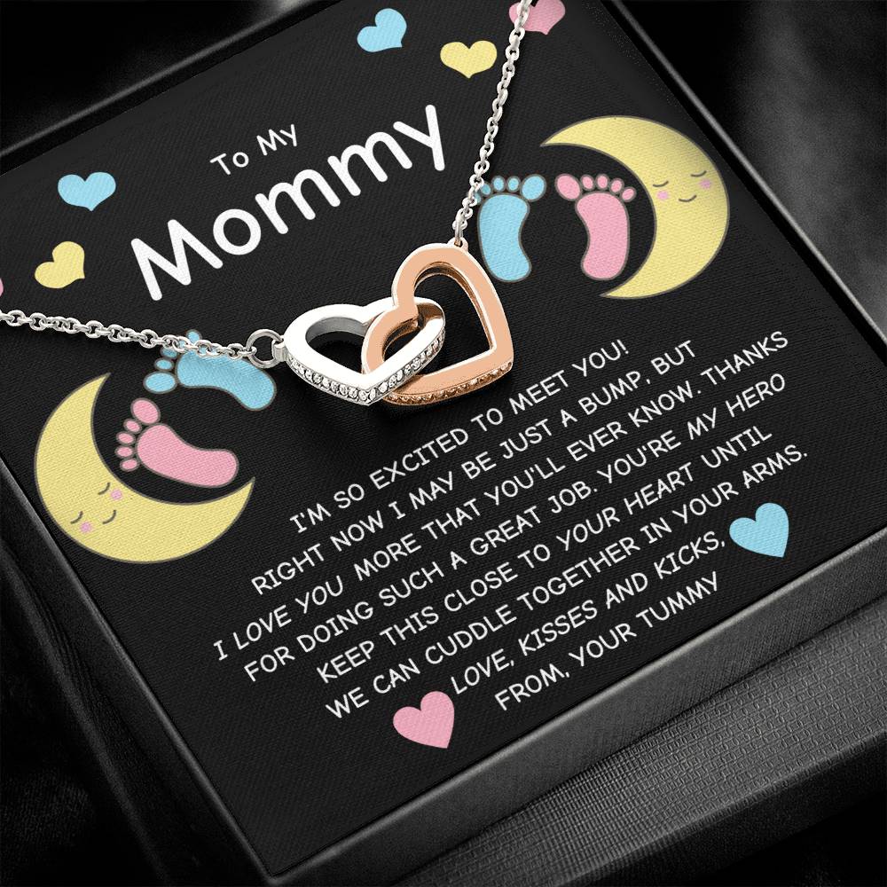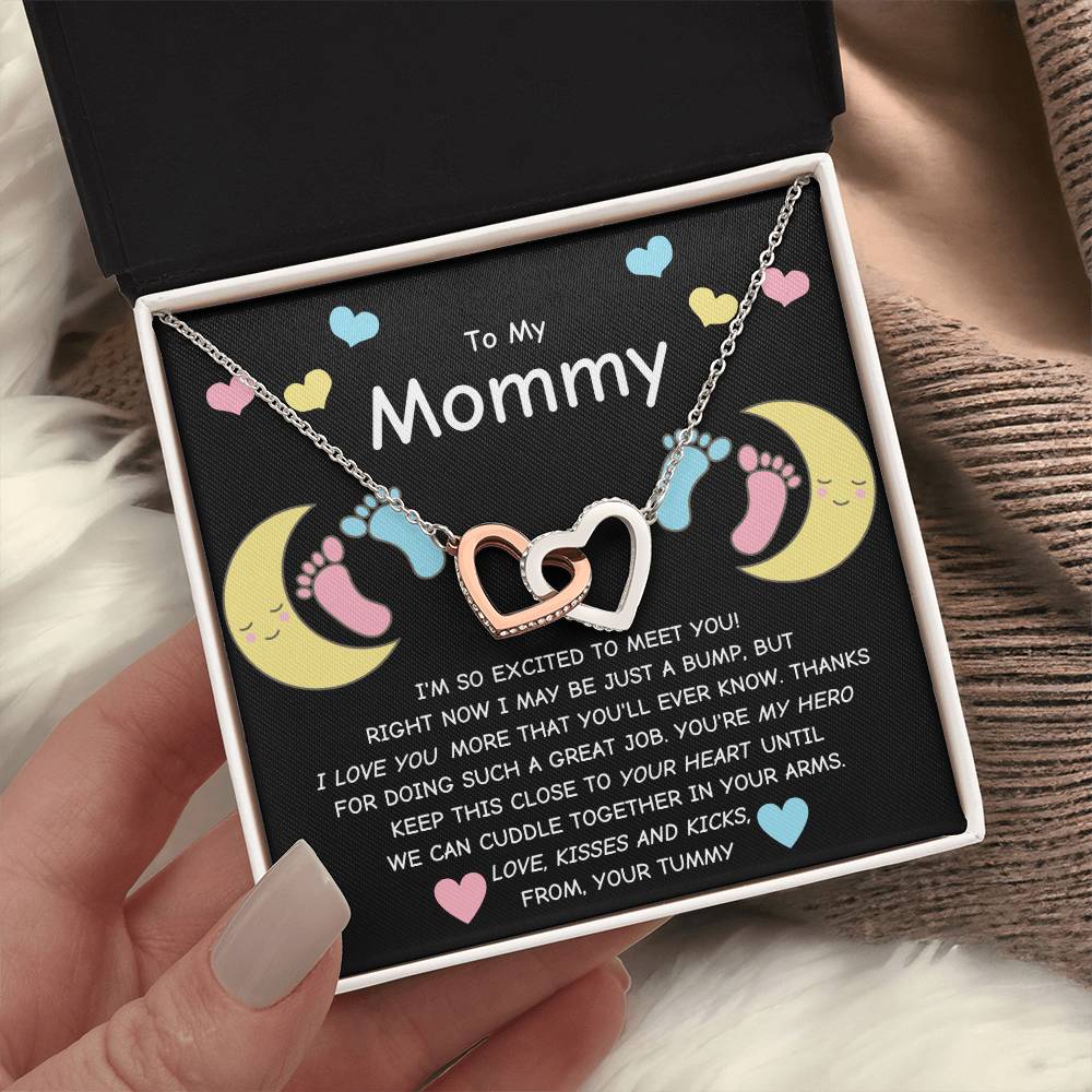 Surprise the Expecting "Mom to Be" with this Forever Interlocking Hearts necklace with message card (as shown) gift today!