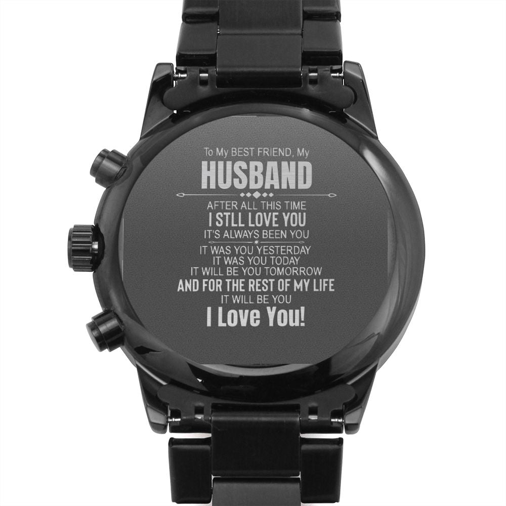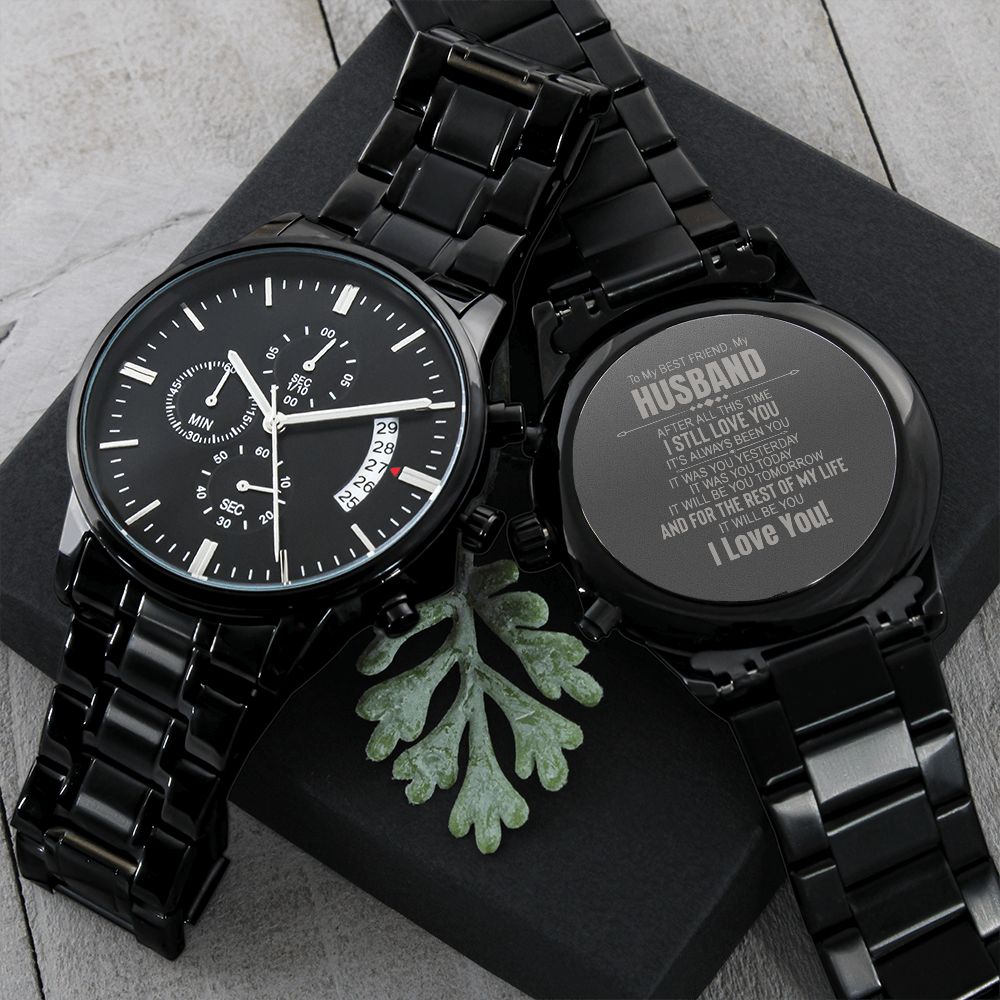 A personalized gift that can withstand constant use, this Engraved Design Black Chronograph Watch is the perfect gift for all the special men in your life.