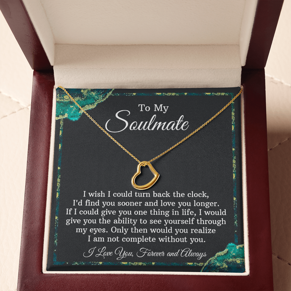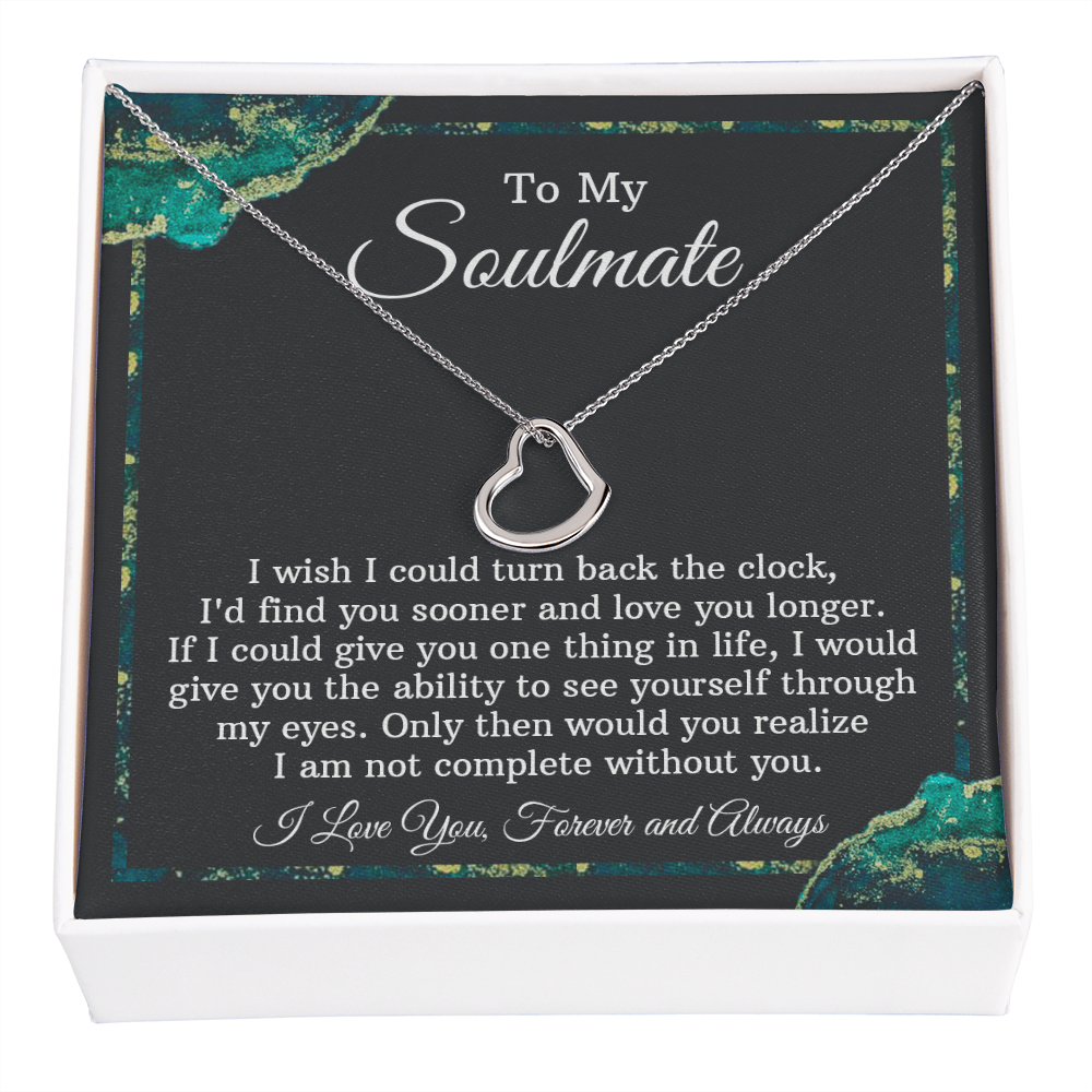 Imagine the moment your wife and soulmate opens the box and sees this magnificent necklace with your heartfelt message that reads:Β