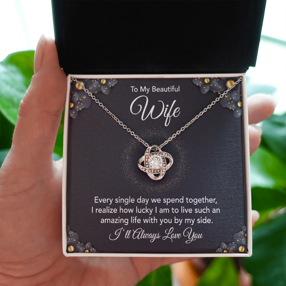Imagine the moment your wife and soulmate opens the box and sees this magnificent necklace with your heartfelt message that reads:Β