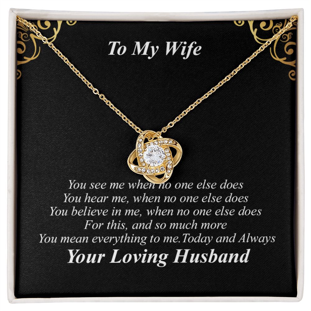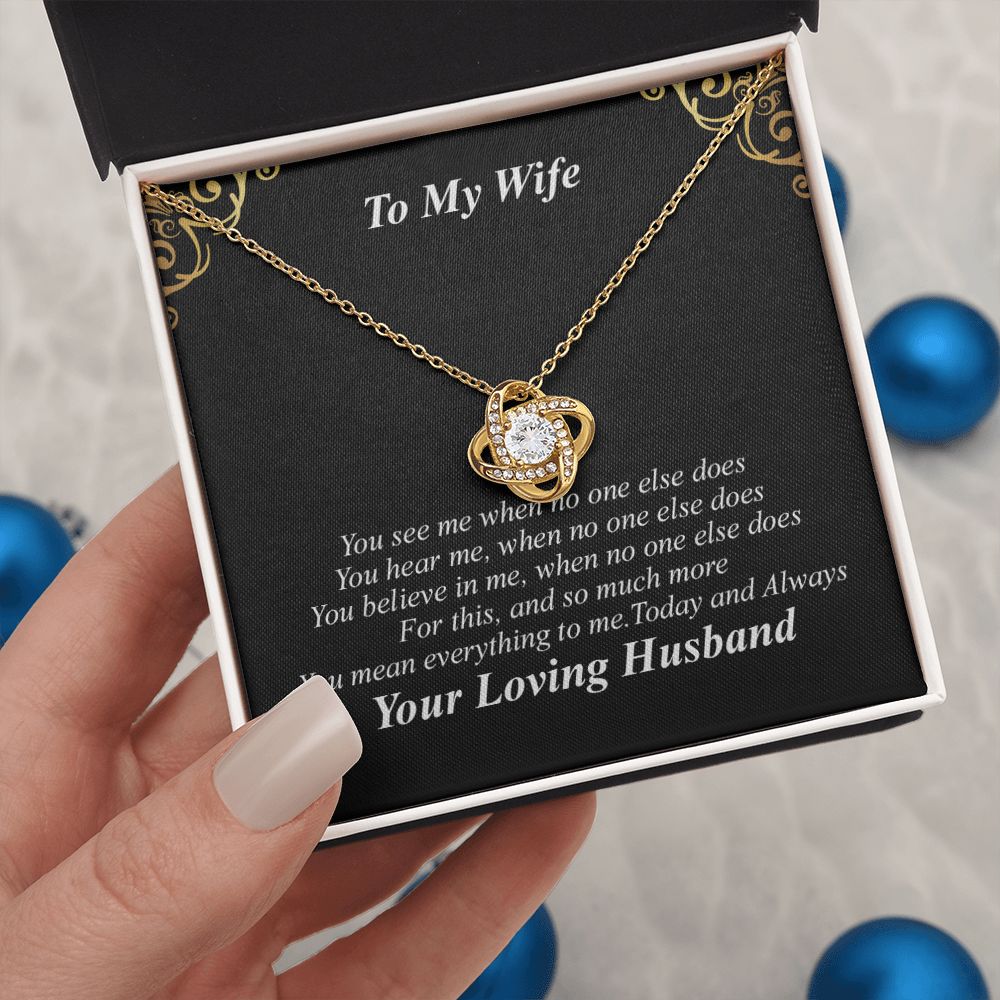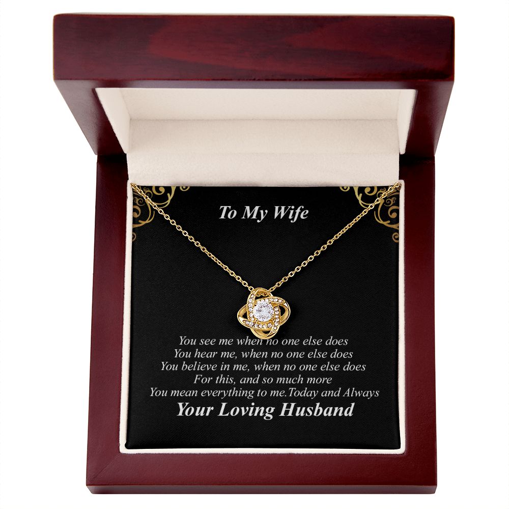 Imagine your wife's reaction to receiving this beautiful Love Knot Necklace